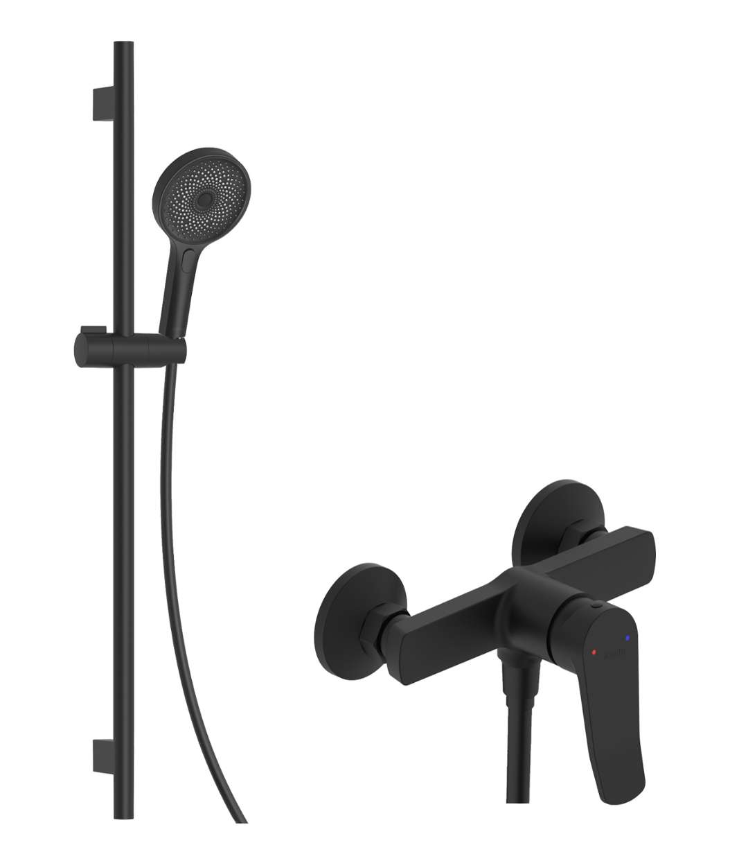 kielle Arkas I - Shower set with mixer tap, riser rail, shower hose and hand shower, matte black 10211SN14