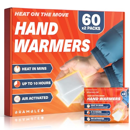 Bramble Hand Warmers Disposable - 60 Pack - Pocket Warmers for Hiking, Outdoor Activities, Skiing - 8 Hours of Heat