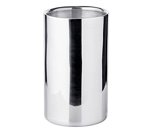 EDZARD Flaskkylare Nebraska, höjd 20 cm, diameter 12 cm, för 1 flaska, dubbelväggig, högglanspolerat rostfritt stål, slät, handarbete – dryckeskylare, vinkylare, champagnekylare