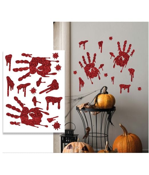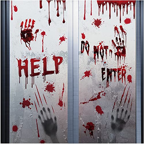 SHOKAN Halloween dekorationer fönsterklistermärken, 6 ark halloween blodigt handavtryck fönsterfästen, återanvändbara halloween väggar golv fönsterdekaler, halloween hemsk fest fönsterklistermärken dekor