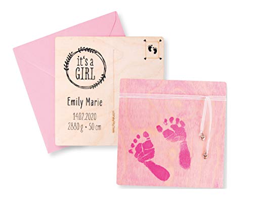 Bieco Set för gipsavtryck baby hand och fot | komplett babyavtrycksset med 3D-bildram av trä | Bilder set med ram för handavtryck baby | gibsavtrycksset händer | set med fotavtryck baby