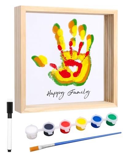 Familjens Handavtryck Fotoram,Familj Handavtryck Kit,Souvenirset för Hand och Fotavtryck,Bildram Hantverkskit,med 6 Färger,Nyfödd Minnessak för Nya och Förväntande Föräldrar