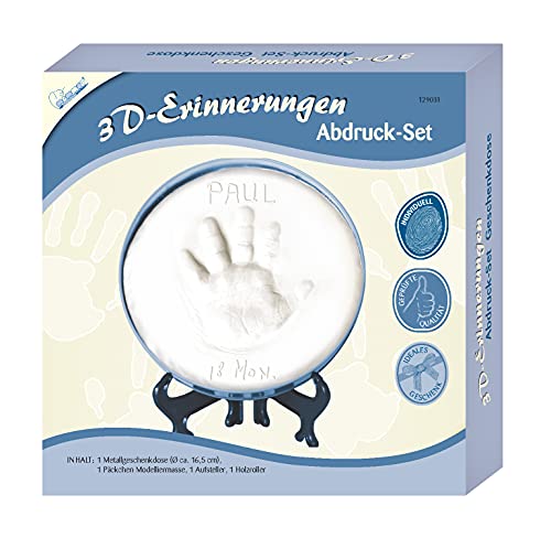 Mammut 129031-3D minnen avtrycksset presentlåda i blått, komplett set för baby fot/handavtryck, med metallburk, 1 paket modelleringsmassa, 1 stativ & 1 trärulle, kreativt set för föräldrar