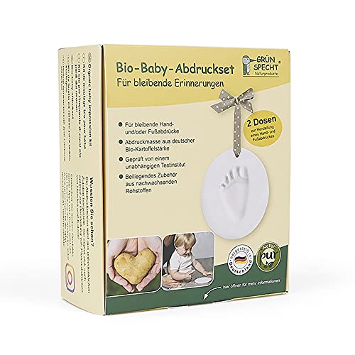 Grönt organiskt baby-avtrycksset, 2 burkar avtrycksmassa och tillbehör, handavtryck och fotavtryck, tillverkad av certifierad ekologisk potatisstärkelse, gåva födelse (679-00)