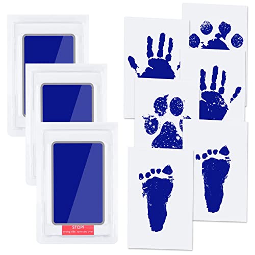 Vicloon Baby avtrycksset, handavtryck och fotavtryck för bebisar med 3 x Clean Touch stämpelkuddar och 6 x tryckkort, babyhud kommer inte i kontakt med färg, för familjegåva – blå