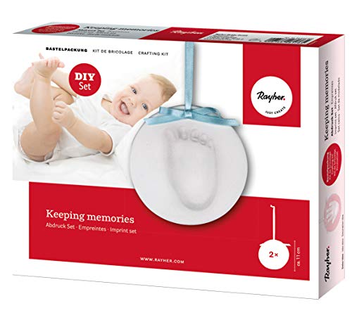 Rayher 34444000 avtrycksset babyhandlare och bebisfötter, en fantastisk present till födelse, dop, babyparty, material för 2 tryckgalger, handavtryck, fotavtryck baby