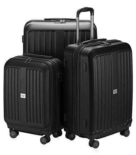 HAUPTSTADTKOFFER – X-Berg – handbagage ombord resväska laptopväska hård sida spinnvagn 4 hjul, TSA, 55 cm, 42 liter, mörkblå matt, Svart matta, SET OF 3, Resväska set