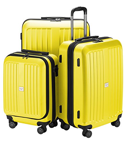 HAUPTSTADTKOFFER – X-Berg – handbagage ombord resväska laptopväska hård sida spinnvagn 4 hjul, TSA, 55 cm, 42 liter, mörkblå matt, Gul matta, SET OF 3, Resväska set