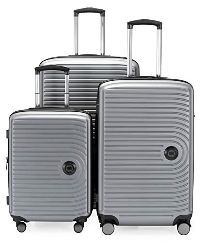HAUPTSTADTKOFFER Mitte - set med 3 resväskor - handbagage resväska 55 cm, medium resväska 68 cm + stor resväska 77 cm, hårt skal ABS, TSA, Matt silver