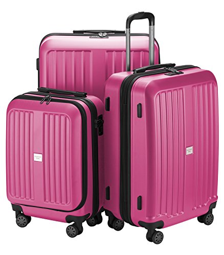 HAUPTSTADTKOFFER – X-Berg – handbagage ombord resväska laptopväska hård sida spinnvagn 4 hjul, TSA, 55 cm, 42 liter, mörkblå matt, Rosa matta, SET OF 3, Resväska set