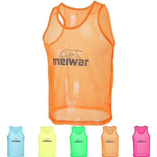 meiwar Leibchen – uppsättning av 10 träningskläder I markeringsskjorta för sport, fotboll, handboll i orange, blå, gul, grön och rosa, för män, barn, kvinnor, apelsin, S