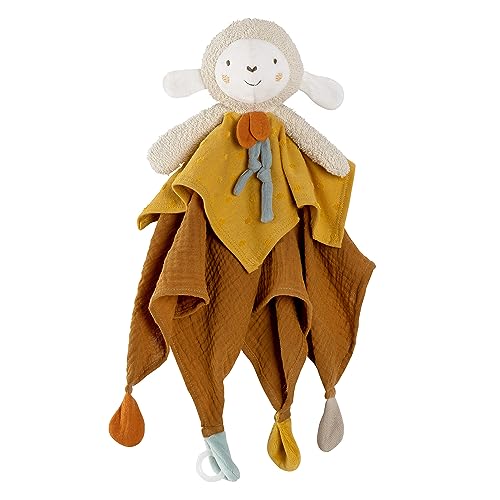 Fehn Gosig handduk får fehnature – lekkamrat och mjukisdjur snuffelduk med bomull från kontrollerad ekologisk odling (kbA) med nappfäste – för spädbarn och småbarn från 0+ månader Får NATUR