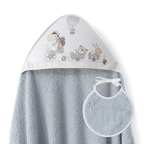 Handduk med huva för barn med bablage - Lazobjörn grå