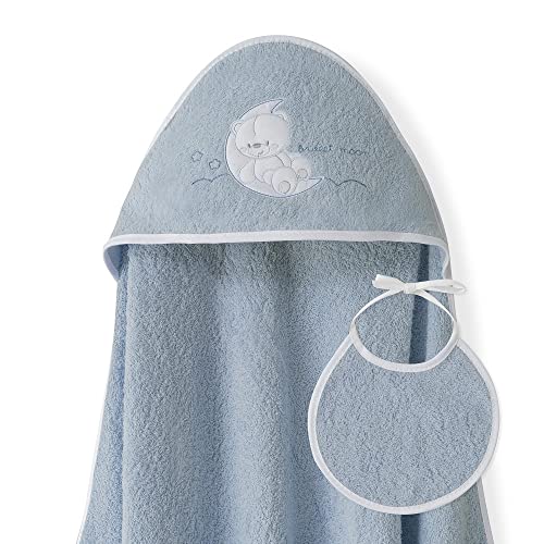 Handduk med huva för barn med bablage - Sweet Moon vit y blå