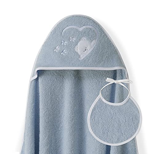 Handduk med huva för barn med bablage - Lazobjörn blå