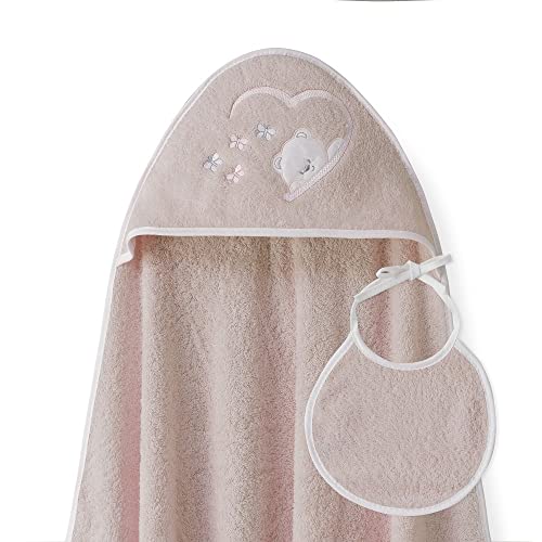 Chicco Handduk med huva, tillverkad av mjukt skum, med delikat broderi, fina material, 100% ren bomull, 0 månader + rosa, ROSA, One size