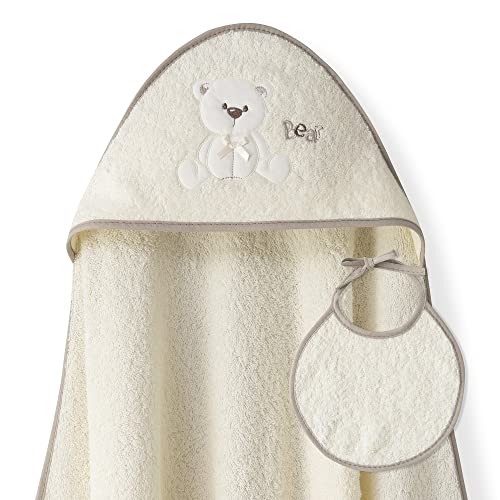Handduk med huva för barn med bablage - fjärilsbjörn beige