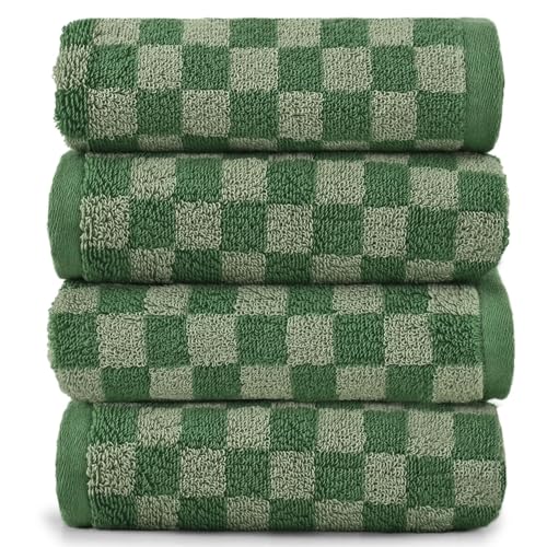 Jacquotha mjuka handdukar 4-pack, grön rutig ansiktshandduk set för badrum kök, dekorativ snabbtorkande handduk 33 x 75 cm