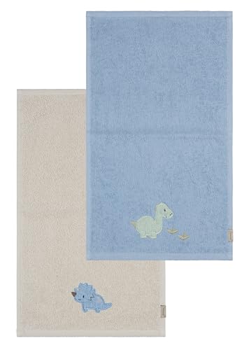 Sterntaler Barnhandduk 2-pack Dino Rexi – handdukar set av absorberande bomull som är behagligt mot huden – barnhanddukar med ädla vävkanter och applikation, blå