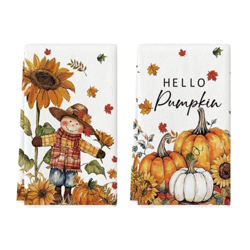 Artoid Mode Fågelskrämma Pumpor Solrosor Lönn Löv Höst Kökshanddukar Diskhanddukar, 42 x 65 cm Säsongsbetonad Höst Dekoration Handdukar Set med 2