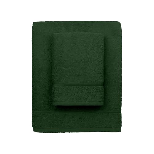 zer0bed, Handdukar badrum lila, set med 2 badhanddukar, ansiktshandduk, bidé handduk, enfärgad, skogsgrön, 100% bomull, 2-delat set