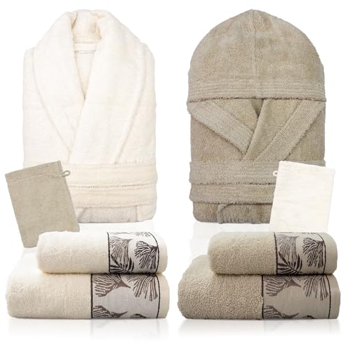 Ago.fil S.r.l. Handdukar Set (1+1) att Brodera Par, 100Percent_Bomull, Elfenben, 60X105 – 40X60, 2 enheter