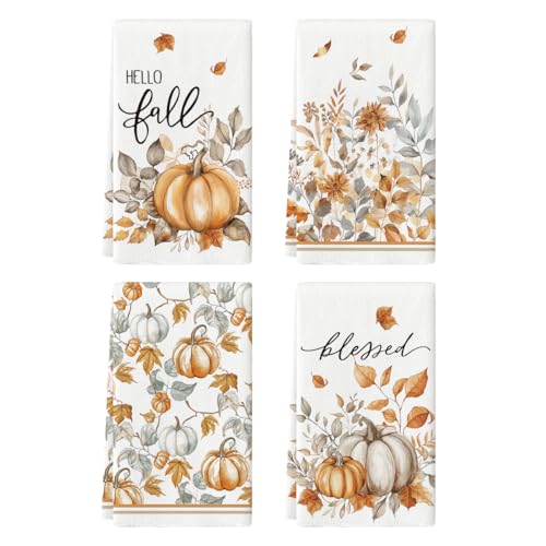 Artoid mode akvarell blad pumpor blommor höst kökshanddukar diskhanddukar, 42 x 65 cm Hello Fall dekoration polyester handdukar set om 4