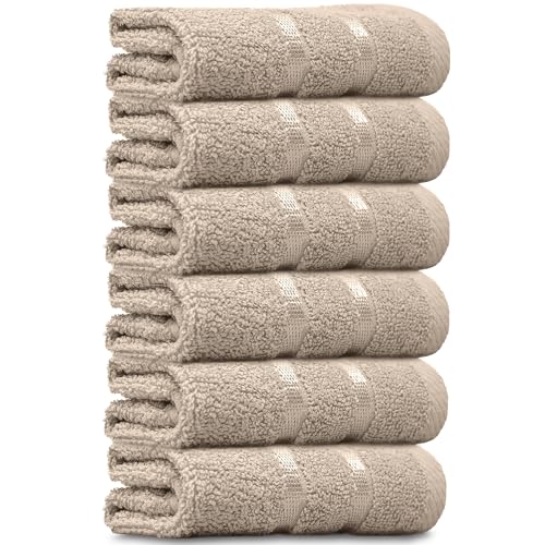 Towelogy® Lyxig egyptisk bomull ansiktsduk flanell fingertopp handdukar set 500 GSM supermjuka och mycket absorberande tvättlappar 30 x 30 cm (paket 10, naturlig beige)