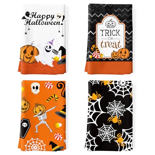 Arquiel Halloween kökshanddukar, 100 % bomull kökshandduks set 50 x 70 cm, multifunktionella snabbtorkande diskhanddukar disktrasor handdukar barhanddukar (set med 4)