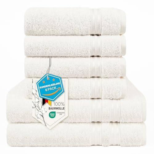 Hammetex Handduksset i 6 delar, 100 % bomull mjuk absorberande kvalitet handdukar set, 2 badhanddukar 70 x 140 cm, 4 handdukar 50 x 100 cm, gräddvit