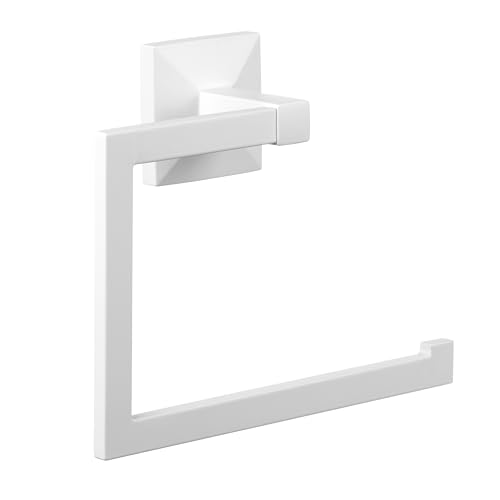 TATAY Handdukshängare Badrum Utan Borrning eller med Skruvar | Inkluderar Glue&Fix Kit (Håller upp till 5 kg) och Skruvar | Rostfritt Stål | Modern Design | 20 x 6,5 x 16 cm - Iconik Modell - Vit