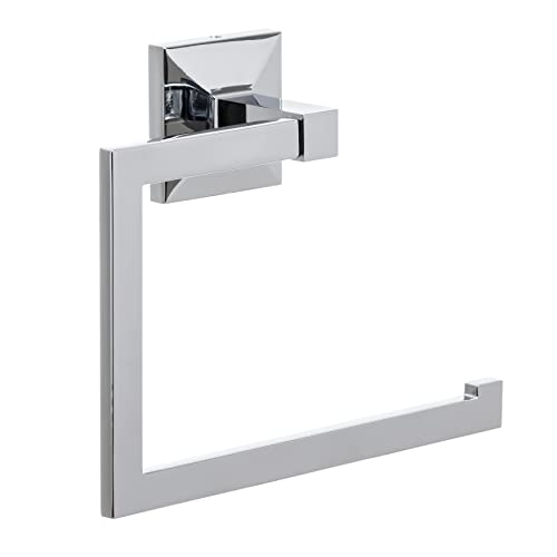 TATAY Handdukshängare Badrum Medium Utan Borrning eller med Skruvar | Inkluderar Glue&Fix Kit (Håller upp till 5kg) och Skruvar | Rostfritt Stål | Modern Design | 6x6,5x45cm -Iconik Modell- Metallisk