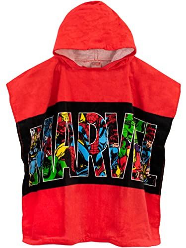 Marvel Handduksponcho | Avengers Barnhandduksponcho | Pojkar Simhandduk | Bärbar Badhandduk | Huvtäcke för Barn | En Storlek Röd