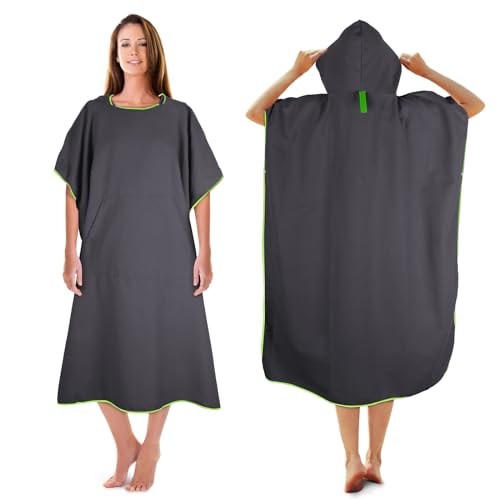 Handduksponcho strand, ultralätt och snabbtorkande, Surfponcho-handduk män och kvinnor, Surf Poncho extra lång av mikrofiber, Mikrofiber Poncho och Ponchohandduk – Storlek: L, Mörkgrå - Grön