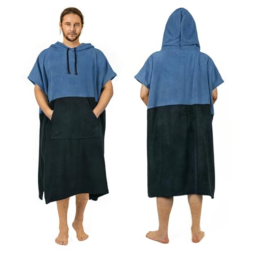 Handduksponcho strand, ultralätt och snabbtorkande, Surfponcho-handduk män och kvinnor, Surf Poncho extra lång av mikrofiber, Mikrofiber Poncho och Ponchohandduk – Storlek: M, Marinblå - Grå