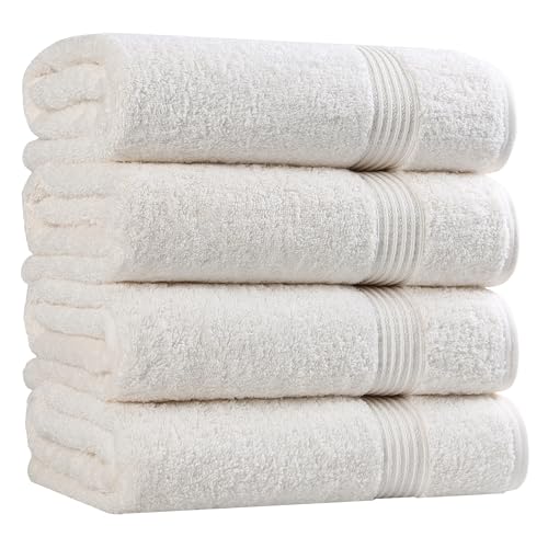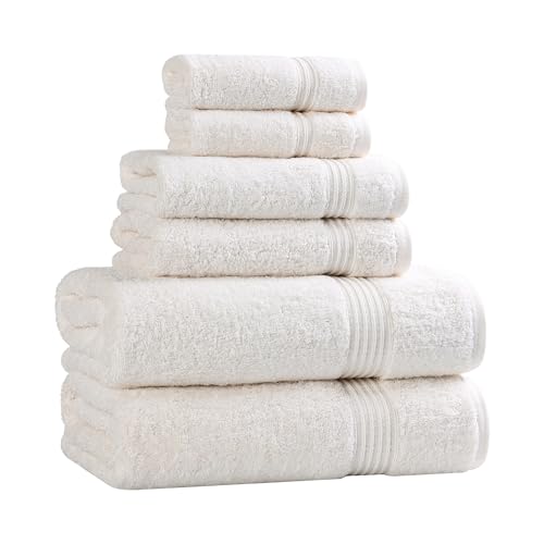 Superior Lyxig mjuk hotell- och spakvalitet 6-delad handduksset, tillverkad långklamrad bomull - 2 tvättlappar, 2 handdukar och 2 badhanddukar, elfenben