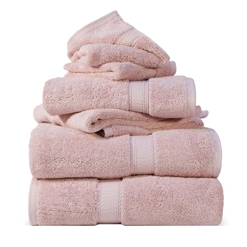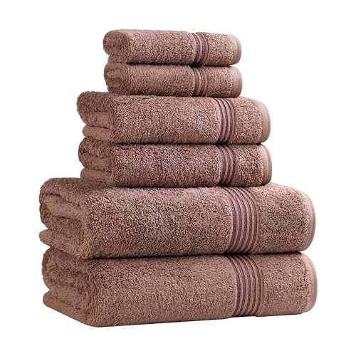 Superior Lyxig mjuk hotell- och spakvalitet 6-delad handduksset, tillverkad långklamrad bomull - 2 tvättlappar, 2 handdukar och 2 badhanddukar, rostat