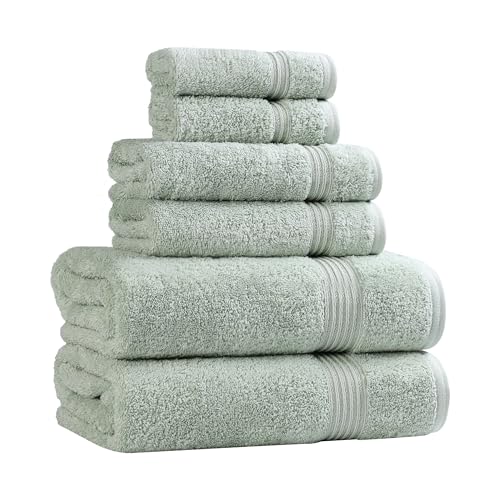 Superior Lyxig mjuk hotell- och spakvalitet 6-delad handduksset, tillverkad långklamrad bomull - 2 tvättlappar, 2 handdukar och 2 badhanddukar, salvia