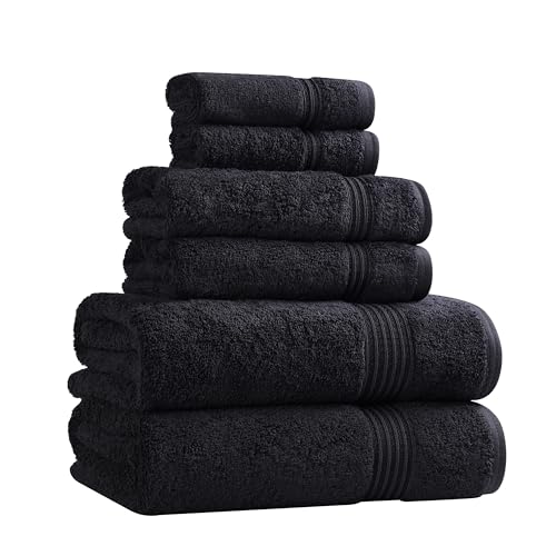 Superior Lyxig mjuk hotell- och spakvalitet 6-delad handduksset, tillverkad långklamrad bomull - 2 tvättlappar, 2 handdukar och 2 badhanddukar, svart