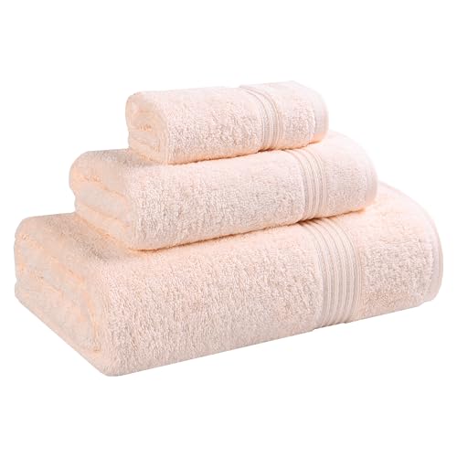 Superior Kollektion 100% premium långklamrad bomull 3-delad handduksset, persika