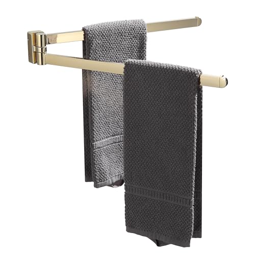BGL Guld vridbar handduksstång, förvaring Oganizer platsbesparande väggmonterad handdukshängare hållare dubbel vridbar handdukstång för badrum