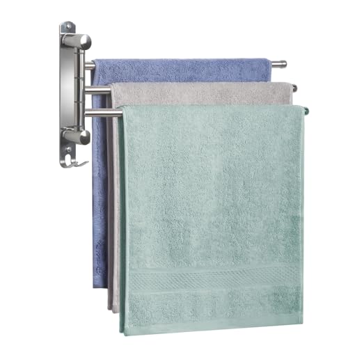 JSVER 3-armad Handdukshängare 180° Vridbar Handdukstång i Rostfritt Stål Väggmonterad Platssparande Gunghanddukshållare för Kök, Badrum, Toalett, Silver