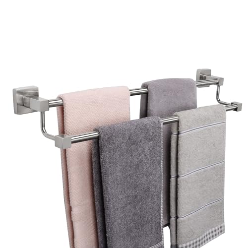 TocTen Dubbel handduksstång – tjock SUS304 rostfritt stål handduksställ för badrum, badrumstillbehör, dubbel handdukstång, kraftig väggmonterad fyrkantig handdukshållare (borstad nickel, 61 cm)