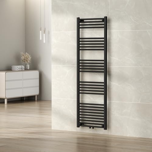 [neu.haus] Elektrisk handdukstork för badrum, handdukstork, varmvatten, uppvärmd 655 W stål 160 x 50 cm svart