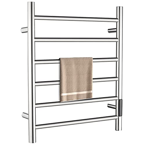QL Elektrisk Handdukstork med Timer,Elektrisk Vägg Handdukshållare Smart Justerbar Temperatur,145W,Rostfritt Stål 6Bar 600x500mm Silver