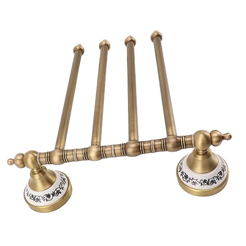 HWGING Vridbar handdukstork, vridbar handdukstork, antik mässing handdukstork, roterande handdukshållare för badrum (fyra stavar)