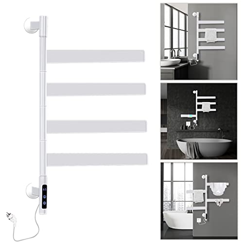 ZOYI 180° rotation badrumsradiator, elektrisk handduksradiator, 140 W, med timer och termostat, handduksvärmare, elektrisk, för dörr, kök, badrum, handdukstork, 220 V, vit