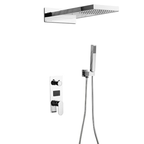 Dolt duschsystem med handdusch duscharmatur set LED termostat duschset duschhuvud regndusch duschpanel massage vattenfall silver armatur väggmontering av rostfritt stål och mässing 50 x 22 x 3 cm