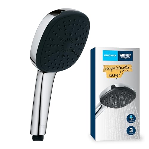 GROHE Vitalio Comfort 110 – handdusch (fyrkantigt 11 cm duschhuvud, 3 sprayer: regn, jet och massage, anti-kalkningssystem, silikonringskydd, universellt monteringssystem), krom, 26092001
