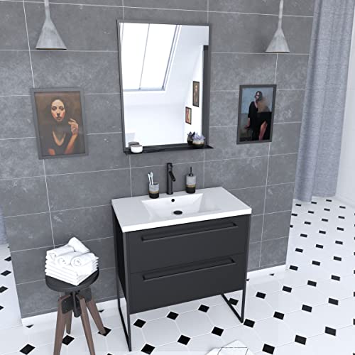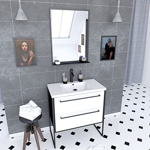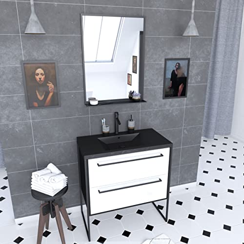 Aurlane badrumsmöbel paket 80 x 50 cm - 2 lådor vit - vit handfat + spegel svart matt